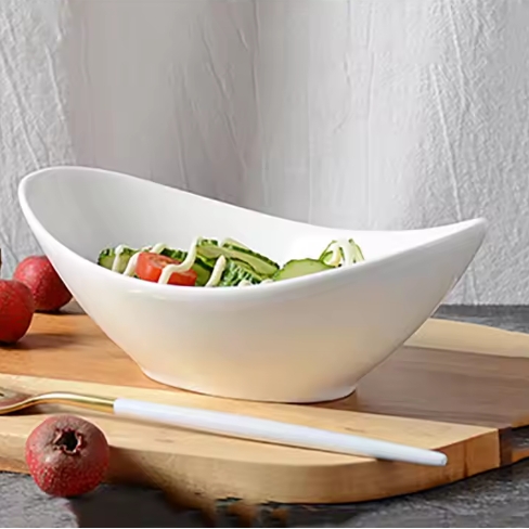[Professional boat design】Elegant streamline shape, low front and high back for easy access to food, perfect presentation of salads/cold dishes.