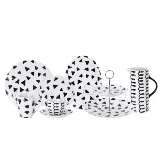 Elegant Monochrome Triangle Design Ceramic Dinnerware Set