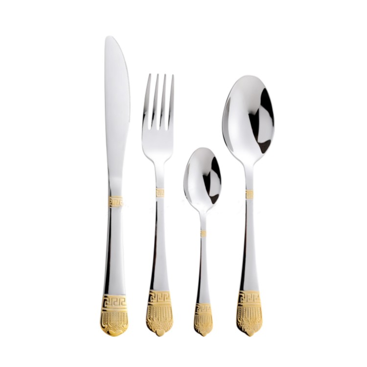 Experience the epitome of luxury and elegance with our Middle Eastern-style Luxury Gold Stainless Steel Cutlery Set. Crafted with meticulous attention to detail, each piece features a mirror-polished finish that exudes sophistication. The handles are intricately designed with two-segment engraving, further enhanced by a lustrous gold plating. This set is perfect for elevating your dining experience, making every meal feel like a royal feast. Ideal for special occasions or everyday use, this cutlery set combines durability with exquisite design, ensuring it remains a timeless addition to your tableware collection.