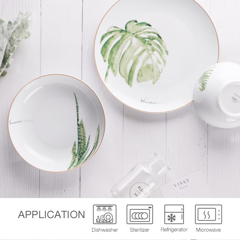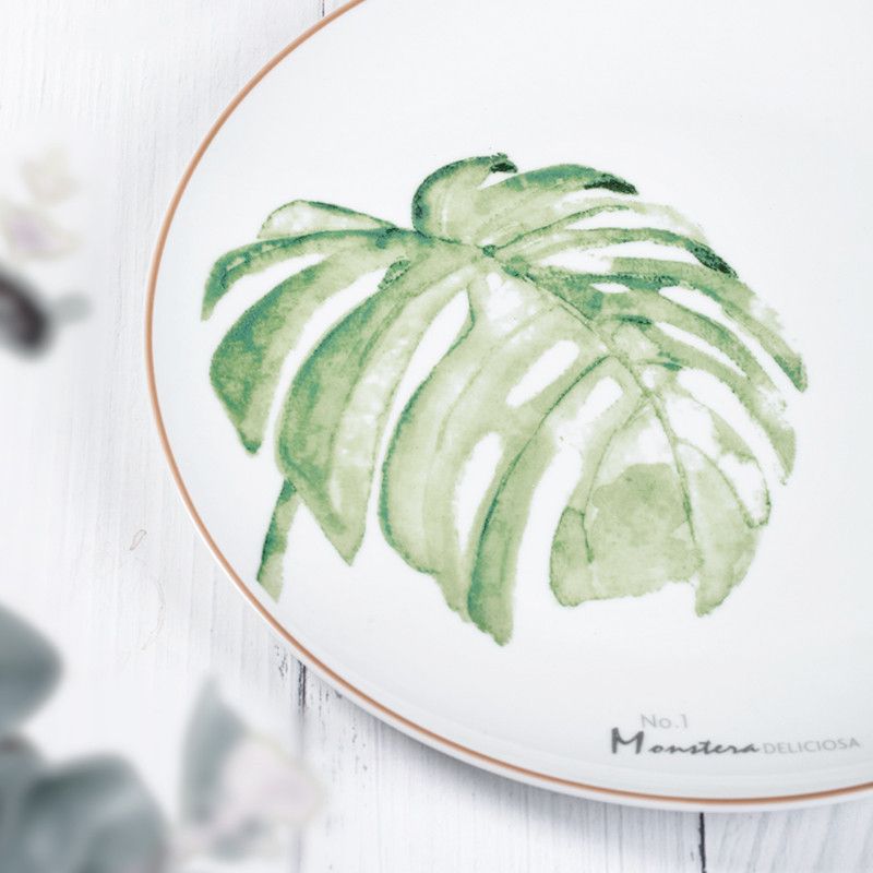 The green palm leaf dinnerware set are perfect for a summer table, and the high-quality ceramics make this tableware set well worth getting