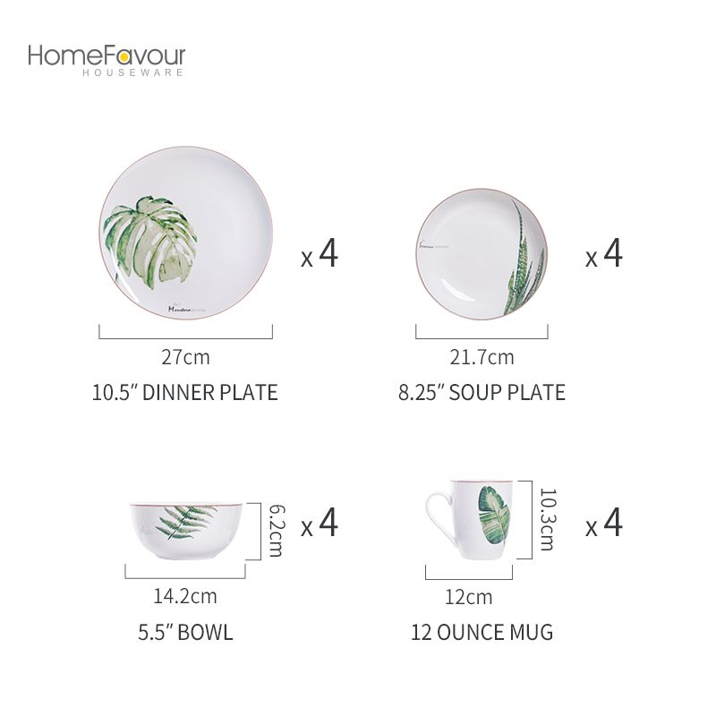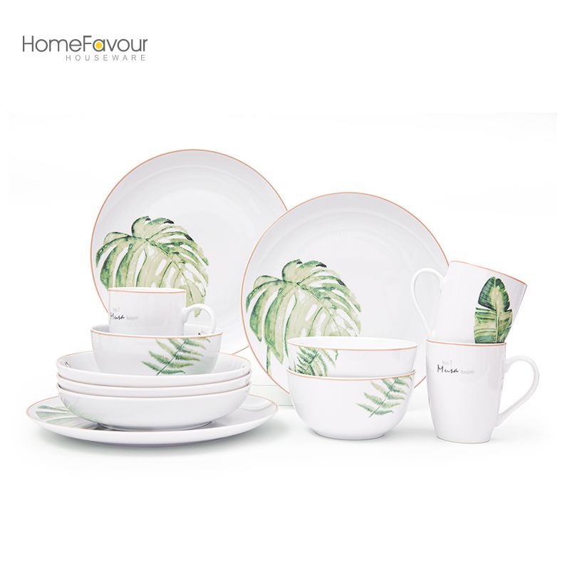 2-16pcs palm leaf porcelain dinnerware set