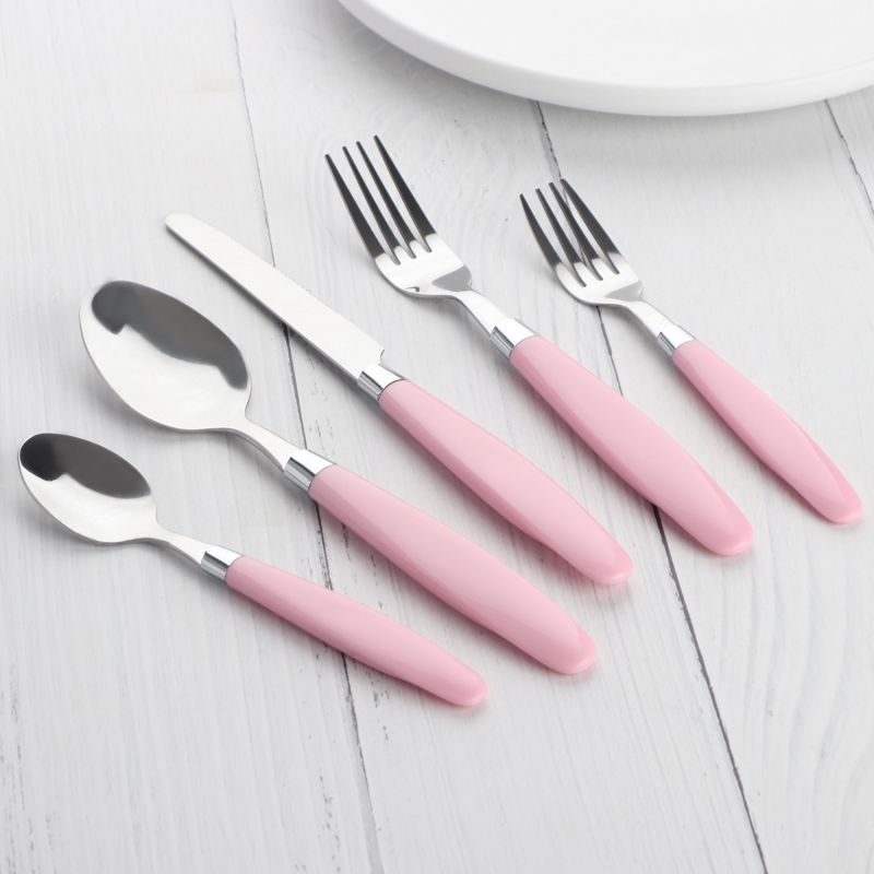 This is our patented flatware, inspired by duck mouth. The handle features a duck mouth impression, for the cute feel we all love. Although the handle is made of PP material, it is textured. This 5-piece DUCK set includes a dinner spoon, a dinner fork, a dinner knife, a dessert fork and a teaspoon, simply perfect for enjoying a dessert or starter. This 5-piece set offers the perfect combination for your daily meals.