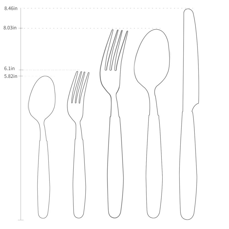 Head: Made from quality stainless steel 18/0, the mirrored finish strengthens its resistance to rust, tarnishing, and hand polish finish to make tableware smoother