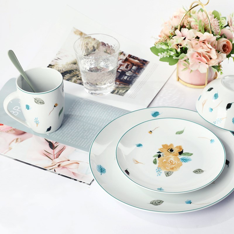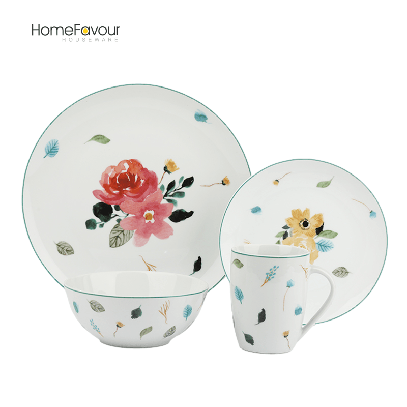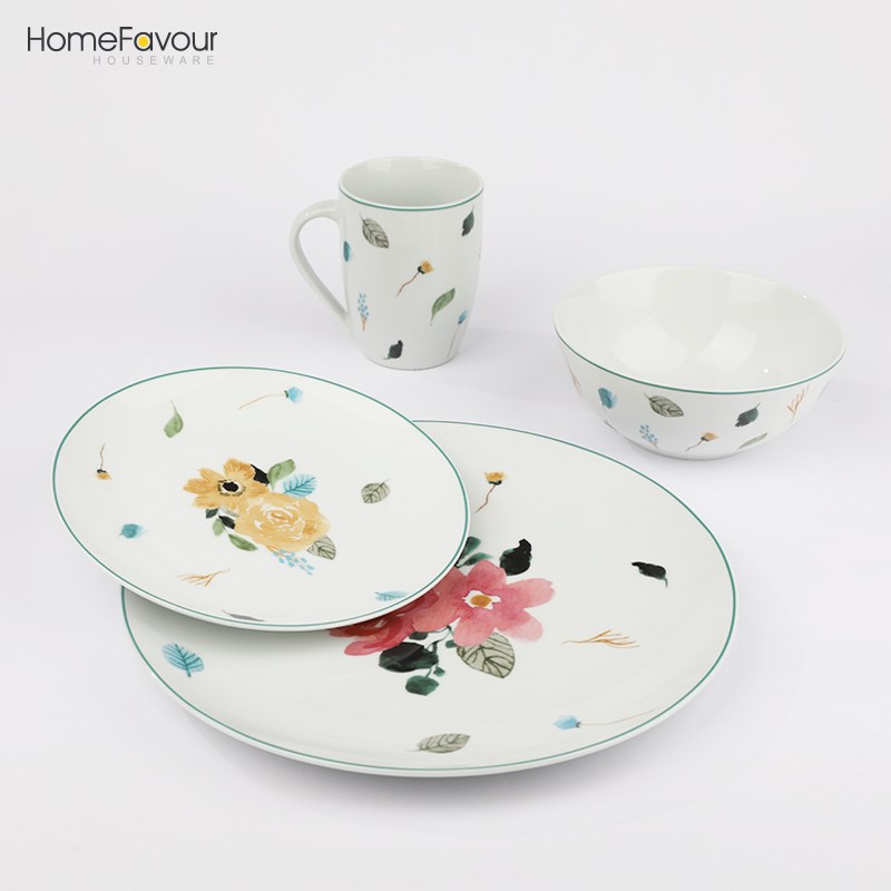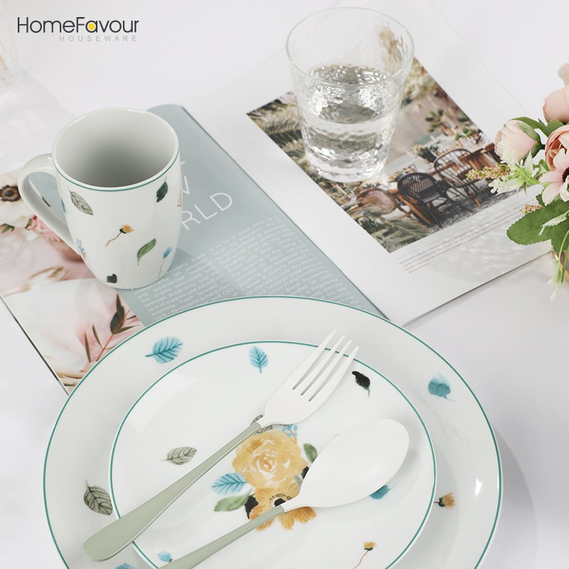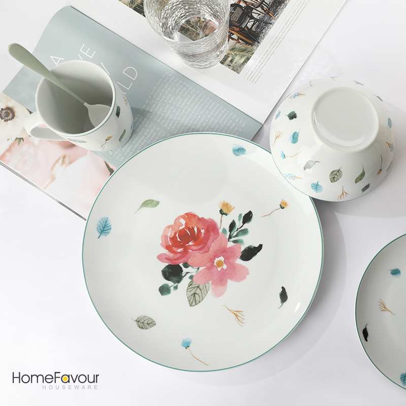 HOMEFAVOUR ORIGINAL DESIGN: White porcelain plates and bowl set with classic natural element style which never goes out of fashion. The dinnerware sets sit firmly on any tabletop or countertop. Elegant dinnerware set by HOMEFAVOUR brings the beauty of nature to the table in warm, tranquil porcelain of contemporary.